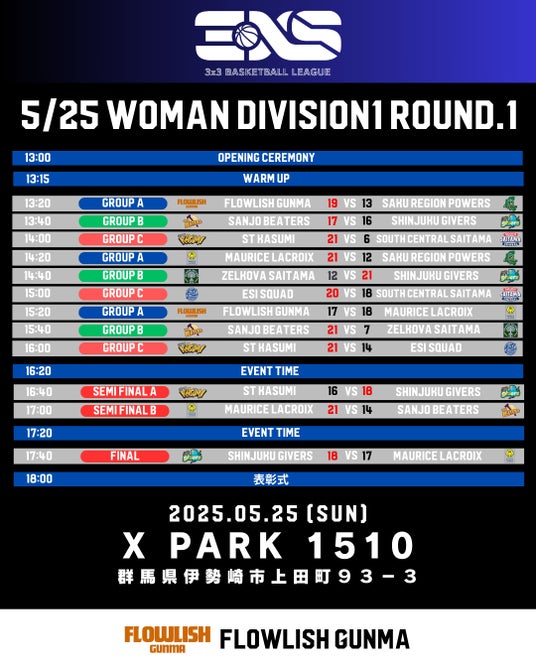 株式会社givers(本社:東京都新宿区、代表取締役:安藝泰弘)は、2025年1月に創設した女子3人制バスケットボールチーム「新宿givers」が、5月25日に開催された3x3リーグ〈WOMAN DIVISION ROUND1〉の開幕戦で初優勝を果たしたことをお知らせいたします。