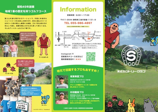 また、50周年に併せて、リーフレットも改訂し、Tomohiro.Eさんによる愉快な仲間たちのイラストも入れ込みました。お子さんも含めて幅広い年齢の方々が楽しめるゴルフ場を目指していきます。