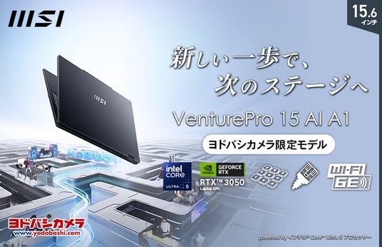 この度、エムエスアイコンピュータージャパン株式会社は、MSIビジネスノートPCシリーズのラインアップを強化するべく、1シリーズで幅広いニーズに対応できる新しいビジネスノートPCとして開発された「VenturePro」シリーズより、「GeForce RTX(TM) 3050 Laptop GPU」と「Microsoft 365 Basic + Office Home & Business 2024」を搭載したヨドバシカメラ限定モデル「VenturePro-15-AI-A1UDXG-3506JP」を2025年6月12日(木)より順次発売いたします。