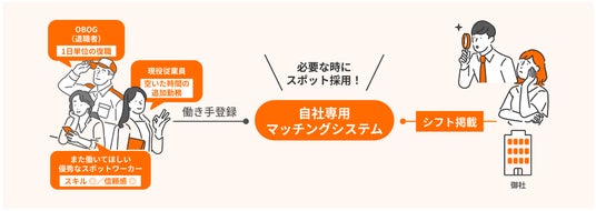 内部雇用者・外部経験者に対するスポットワークの求人提供に関する独自技術など