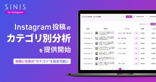 企業のSNSマーケティング支援を行うテテマーチ株式会社(本社:東京都目黒区、代表取締役:上田 大介)は、同社が提供するInstagram分析・運用支援ツール「SINIS for Instagram(サイニスフォ-インスタグラム)」にて、投稿をカテゴリ(企画・テーマ)ごとに分類し分析できる「カテゴリ別分析機能」をリリースいたしました。
