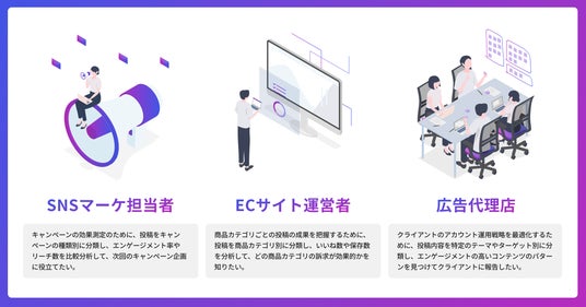 また、従来の投稿単位の分析では見えにくかった「企画ごとの成果」や「ターゲット別の反応差」などを明らかにするべく、このたび「カテゴリ別分析機能」を開発・提供するに至りました。