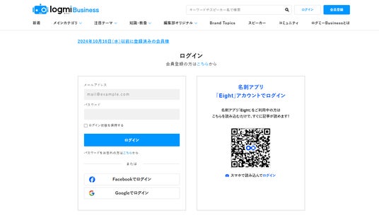 「ログミーBusiness」の会員ページへのログインにEightの「デジタル名刺」を利用可能に