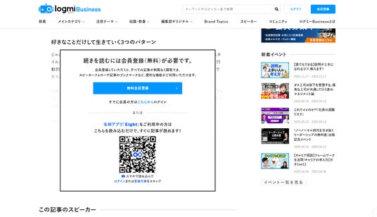 今回の「ログミーBusiness」と名刺アプリ「Eight」の連携によって、Eightのアカウントを持っていれば、簡単に会員専用のページにアクセスが可能になりました。また、会員限定公開記事についても、スマートフォンのEightアプリを使って簡単に読むことができるようになります。