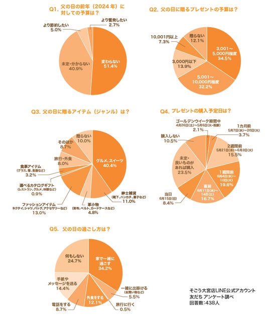 *そごう大宮店LINE公式アカウント「父の日アンケート」5月14日(水)~20日(火)実施 回答数438名 *母の日の予算額は4月実施の「母の日アンケート」より