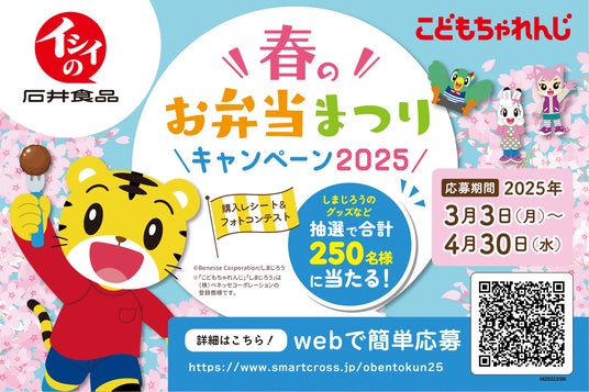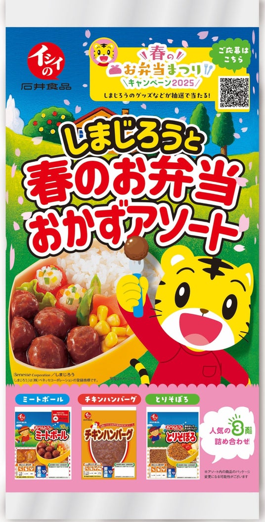 無添加調理※1で商品作りを進めている石井食品株式会社(本社:千葉県船橋市、代表取締役社長執行役員:石井智康、以下、「石井食品」)は株式会社ベネッセコーポレーション(本社:岡山県岡山市、代表取締役社長:小林仁、以下ベネッセ)が提供する、幼児の教育・成長支援ブランド「こどもちゃれんじ」の人気キャラクター「しまじろう」とコラボした春のお弁当まつりキャンペーン2025を2025年3月3日(月)~4月30日(水)まで実施いたします。本キャンペーンは今年で第4弾目を迎え、ミートボールをはじめ、石井食品の商品で春からのお弁当デビューを応援したいという思いから開始しました。共働き世帯が増え、育児や家事で忙しい日々を過ごされているご家庭へ、手軽で安心・安全な食を通して、親子でハッピーになれるよう「こどもちゃれんじ」と初めてコラボすることにいたしました。今回は抽選で合計250名様に金のクオカードやしまじろうのアルミお弁当箱をプレゼントいたします。また、しまじろうがパッケージに入った期間限定商品も3月1日(土)より販売いたします。