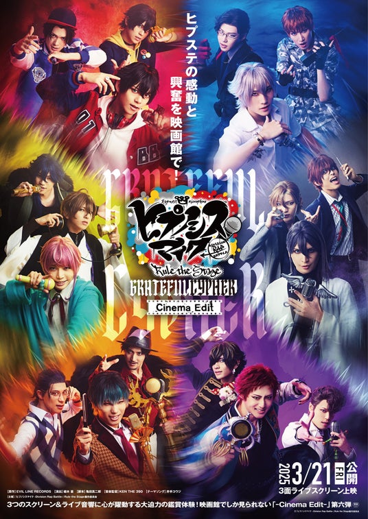 この度、2024年10月4日(金)~10月14日(月・祝)TOKYO DOME CITY HALLで上演された『ヒプノシスマイク -Division Rap Battle-』Rule the Stage -Grateful Cypher-を、劇場版シリーズ六作目『ヒプノシスマイク -Division Rap Battle-』Rule the Stage -Grateful Cypher-【Cinema Edit】として、3面ライブスクリーンで上映。