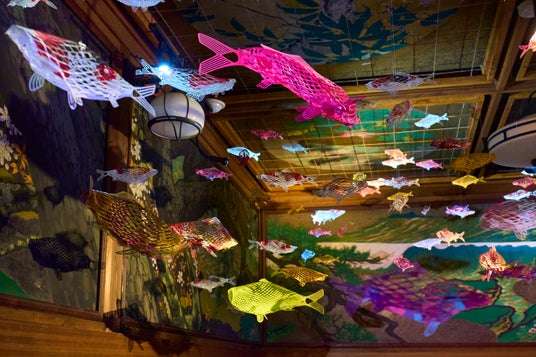 展示会場である文化財「百段階段」は、1935(昭和10)年に建てられた、ホテル雅叙園東京で現存する唯一の木造建築です。当時屈指の著名な画家達が創り上げた美しい空間を背景に、繊細さと躍動感を秘めた「和のあかり」と「鬼」が特別な体験へと誘います。