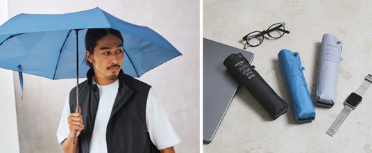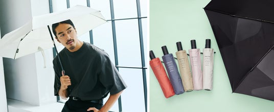 クイックにたためるシェイプメモリー機能がついた晴雨兼用傘。UVカット率99.9%以上、遮光率99.99%以上、遮熱効果、撥水性能をもつ高機能なアイテム。さらに約210gの軽量タイプで持ち運びに便利なのも嬉しいポイント。ベーシックなカラー展開で、晴れの日でも雨の日でも毎日使えるので男性の日傘デビューにもおすすめ。