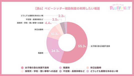 5. ベビーシッター補助制度を利用したい場面として、「お子様の急な体調不良時」や「残業時」を挙げる方が多くいらっしゃいました。