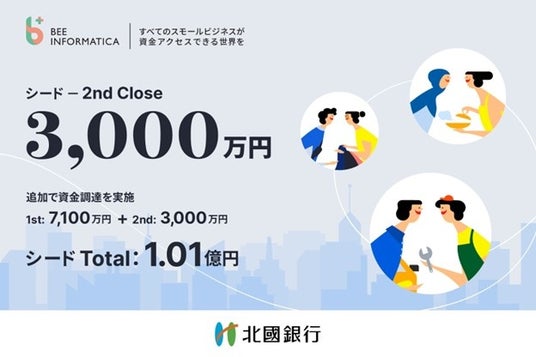 ビー・インフォマティカ株式会社(本社:東京都渋谷区、マレーシアクアラルンプール支社)はシードラウンドにて、2025年2月に、北國銀行から1,500万円、個人投資家5名から1,500万円の合計3,000万円のデットファイナンスによる追加資金調達を実施しました。本調達により、2024年8月実施の7,100万円に加え、合計調達額は1億100万円に到達しました。設立当初からの累計調達額は、1億4,100万円となりました。