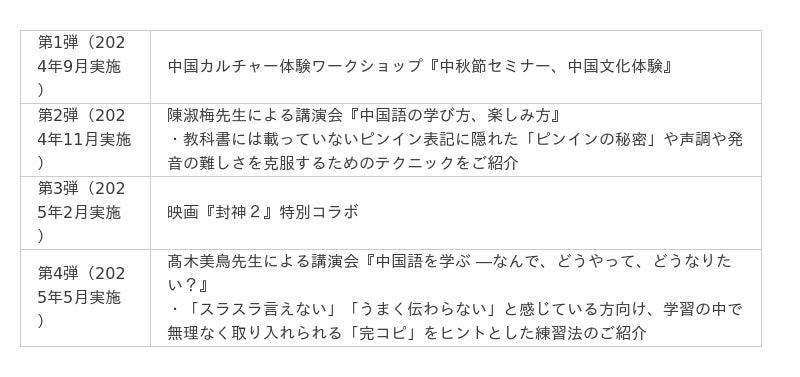 ■ハオ中国語アカデミー開校20周年記念企画 過去実施一覧
