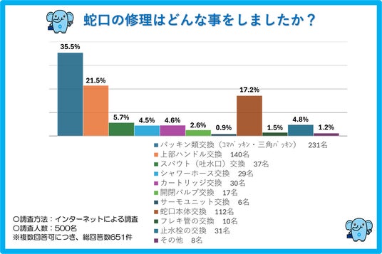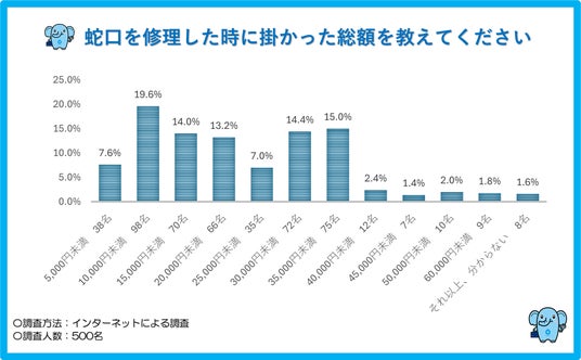 住まいる水道(株式会社住まいる設備、本社:東京都練馬区)が、全国で蛇口の修理を業者へ依頼した事がある500名を対象に「過去、修理の際に支払った金額や修理内容」に関する独自アンケートを実施しました。