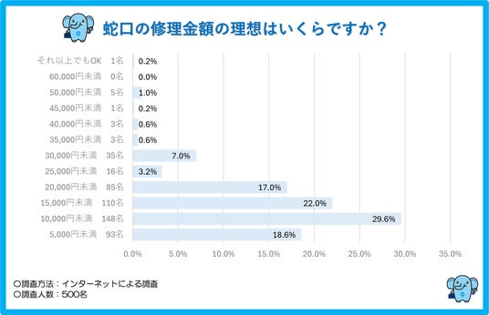 今回の調査結果から総合的に判断すると、「蛇口の修理はかかっても30,000円までが理想」ということが見て取れます。