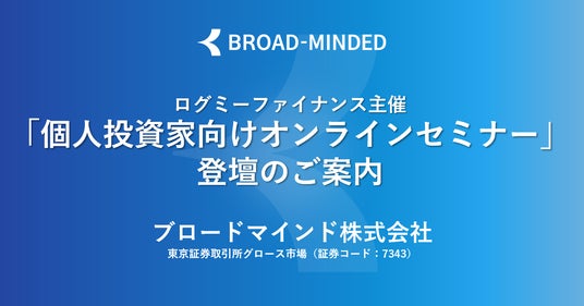 「金融の力を解き放つ」をパーパスに掲げ、ライフプラン実現を支援する金融サービスの開発・提供を手掛けるブロードマインド株式会社(本社:東京都渋谷区 代表取締役社長:伊藤清 証券コード:7343 以下:当社)は、2025年6月14日(土)に開催される「ログミーFinance 個人投資家向けオンラインIRセミナー」に登壇いたします。