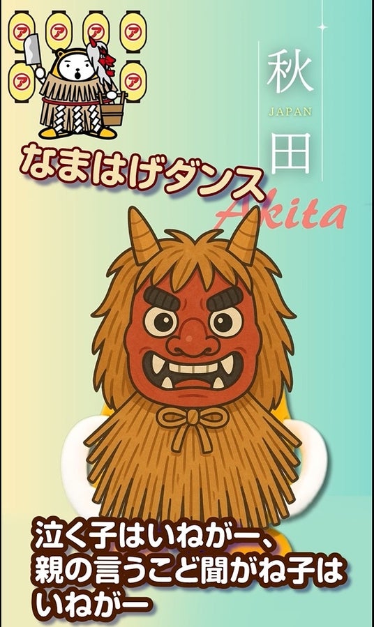 第5弾「秋田 なまはげダンス」では、なまはげに身を包んだべあ~君が、五穀豊穣と無病息災を願いながらコミカルに踊ります。見どころは、迫力あるなまはげと、五穀豊穣を願う福を呼び込む動きです!