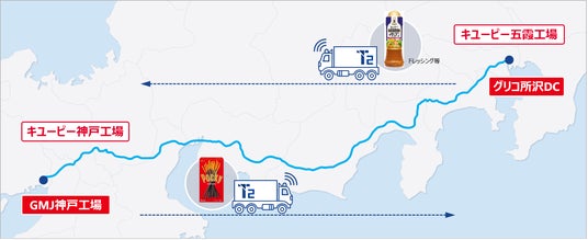 - 場所:関東・関西間の高速道路上の一部にて実施<往路>:キユーピー五霞工場 → キユーピー神戸工場間<復路>:グリコマニュファクチャリングジャパン神戸工場 → グリコ所沢DC間