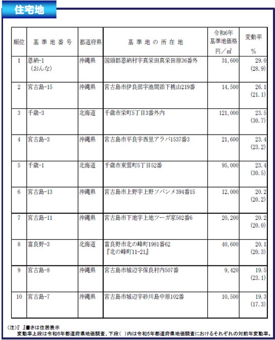 https://www.mlit.go.jp/totikensangyo/content/001762894.pdf (国土交通省 令和6年都道府県地価調査の概要)