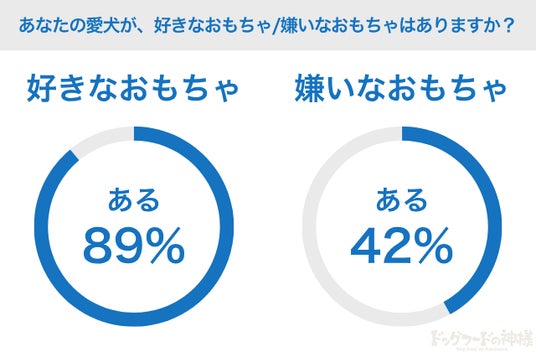 - 約9割の飼い主が「愛犬に好きなおもちゃがある」と回答した。一方で嫌いなおもちゃは42%とやや少なめ。