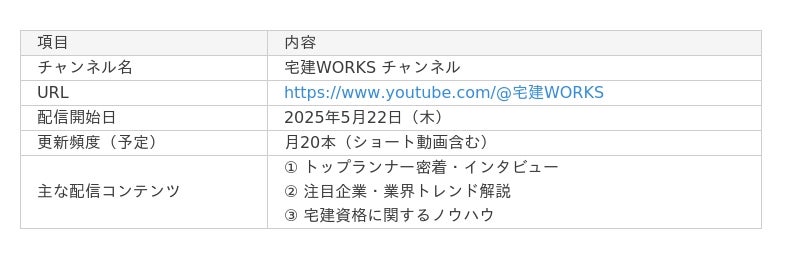 「宅建WORKSチャンネルの開設により、不動産業界で働く様々な方々のリアルな働き方や仕事への想いを直接お届けできることを大変嬉しく思います。不動産業界は努力や実力次第で大きく成長できるチャンスが多い業界であり、宅建資格を活かすことで大きなキャリアアップが期待できます。しかし、実際にどのような人が活躍し、どのような思いで日々業務に取り組んでいるのかが十分に知られていない現状があります。本チャンネルでは、宅建資格の重要性や取得のメリット、業界トップランナーの密着インタビューなどを動画で発信し、より多くの優秀な人材が不動産業界で活躍できるきっかけとなることを目指します。」