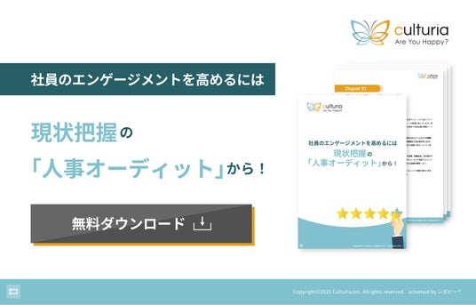 「社員のエンゲージメントを高めるには 現状把握の 『人事オーディット』 から!」をダウンロードする:https://culturia.co.jp/hr-audit-download