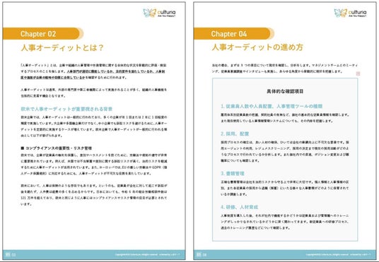 株式会社カルチャリア(本社:東京都港区、代表取締役社長:奥山由実子)は、企業の人事戦略立案の第一歩となる「人事オーディット(人事監査)」の重要性と実践方法をまとめた解説ガイド「社員のエンゲージメントを高めるには 現状把握の 『人事オーディット』 から!」を無料公開しました。