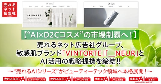【“AI×D2Cコスメ”の市場制覇へ】売れるネット広告社グループ、敏感肌ブランド「VINTORTE」「_NEUR」とAI活用の戦略提携を締結~“売れるAIシリーズ”がビューティーテック領域へ本格展開~