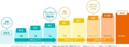 本コースの対象となるのはボディトレーナー(BT)1級以上の上位ランク者のみとなります。(店舗で常時勤務しているスタッフのランクはエグゼクティブボディトレーナーが最高峰ランクとなります)
