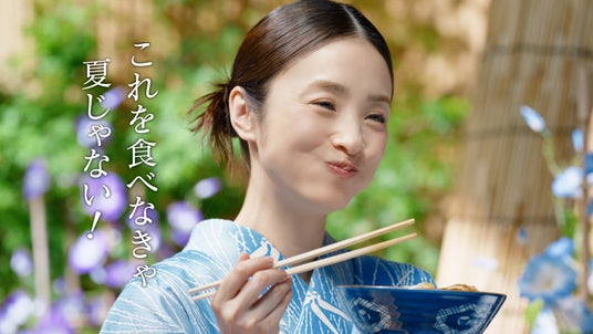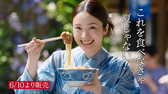 涼やかな水色の浴衣姿に身を包んだ上戸さんは、「これを食べなきゃ夏じゃない!」といったナレーションとともに、『鬼おろし肉ぶっかけうどん』と『鬼おろし豚しゃぶぶっかけうどん』をそれぞれつるっと一口。今年も「鬼おろしシリーズ」が食べられる!という喜びを上戸さんの食べっぷりで表現しています。そして最後にどさっと鬼おろしが盛り付けられた『鬼おろし肉ぶっかけうどん』と『鬼おろし豚しゃぶぶっかけうどん』でTVCMを締めくくります。