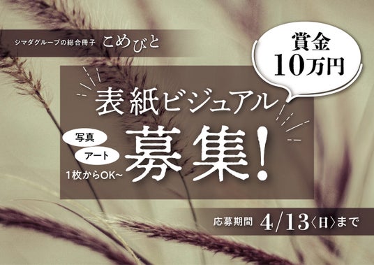 シマダグループ株式会社(本社:東京都渋谷区/代表取締役:島田成年)は自社で発行するブランド冊子「こめびと」の表紙を決定するデザインコンテストを開催いたします。応募期間は4月13日(日)23:59まで。採用された作品の応募者には賞金10万円を贈呈いたします。