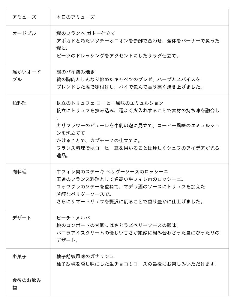 日本テレビ「ぐるぐるナインティナイン」『ゴチになります!特別コース』を期間限定販売。出演者も絶賛!ホテルシェフが巧みな技で仕上げる創作フレンチをコース仕立てで