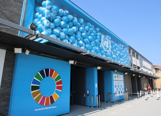 国連パビリオンは35の国連諸機関、15の国連事務局の部局が一丸となり、「人類は団結したとき最も強くなる。(United for a Better Future)」というテーマで様々な展示やプログラムを行っています。これからの未来を担う多くの子どもたちにも、創設80年の歴史、持続可能な開発目標(SDGs)の達成、世界的な課題に向けた取り組み、そして人々の行動と多国間協力によってのみ実現できる「持続可能な未来」のビジョンを伝えています。