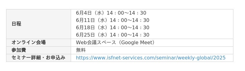 セミナーお申し込みはこちら:https://www.isfnet-services.com/seminar/weekly-global/2025