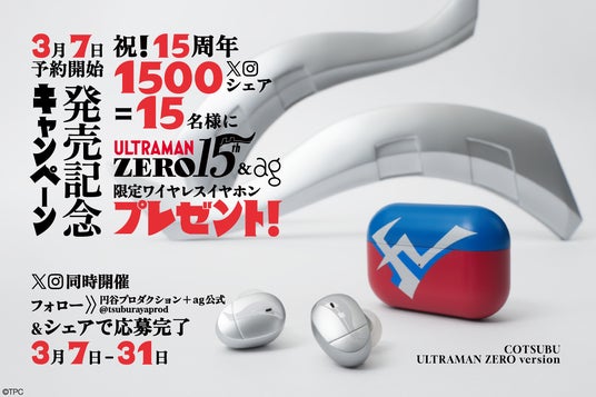 今回、ウルトラセブンを父に持つ「ウルトラマンゼロ」をテーマにした製品開発を行なうこととなり、finalを親に、agブランドをその子どもに例え、agの大人気ワイヤレスイヤホン「COTSUBU ASMR」シリーズを軸とした「COTSUBU ULTRAMAN ZERO version」の企画がスタートいたしました。