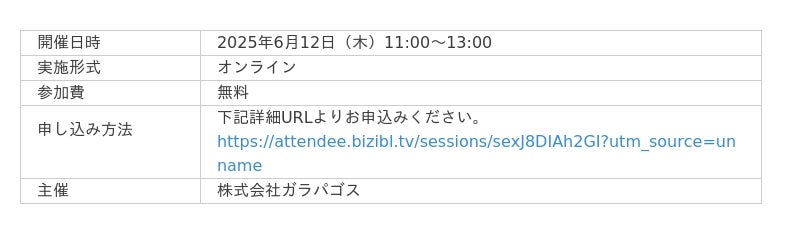 マーケティングの側面から、企業の事業成長と生産性向上を支援する株式会社unname(本社:東京都渋谷区、代表取締役:宮脇 啓輔、以下「unname」)は、2025年6月12日(木)に株式会社ガラパゴスが開催するウェビナーに登壇することをお知らせいたします。