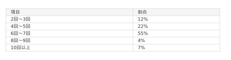背中の医療脱毛では、「6回~7回」施術を受けている方が最も多いという結果が得られました。