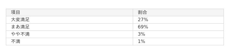 - 施術に「大変満足」「まあ満足」と答えた人が全体の96%を占める