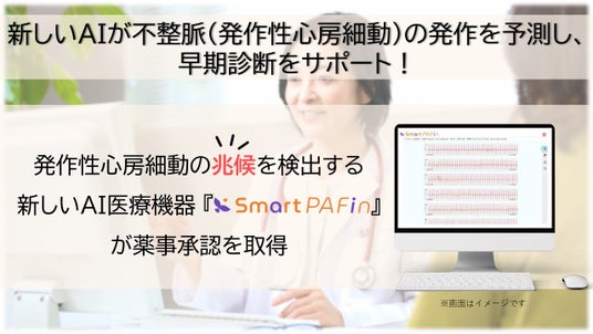 株式会社カルディオインテリジェンス(本社:東京都港区、代表取締役:田村雄一 以下、当社)は、不整脈の一つである心房細動の発作を予測する新しいAI医療機器『発作性心房細動兆候検出ソフトウェア SmartPAFin シリーズ』(以下、SmartPAFin)を開発し、医療機器製造販売承認を取得したことをご報告いたします。