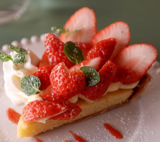 - 全4種のスイーツをご用意する『苺フェア』の目玉メニューは農園直送のフレッシュな苺をサクサクのタルトとあわせた毎年人気No.1の「苺のタルト」です。