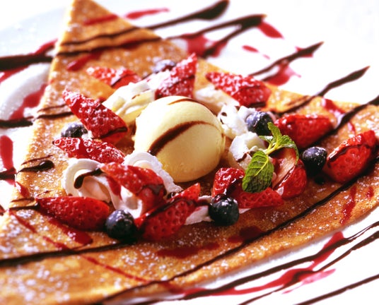 香ばしいライ麦入りの自家製クレープに、フレッシュな苺をトッピング。