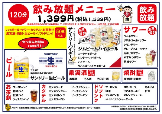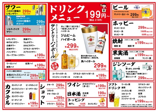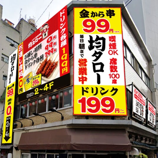 50種以上の豊富なフードメニューとドリンクが激安で大好評のコスパ系居酒屋・均タローは普段使いがしやすく特に若者から人気のブランドです。グループでもご利用しやすい予約なしで当日注文OKの食べ飲み放題コースや、当社創業から累計50万本販売のオリジナル唐揚げ「金から串」が名物。今回、東京都大田区・蒲田駅東口(徒歩5分)に開店する蒲田店は「お通しなし・席料0円」の料金システムで気軽にご利用になれ、コスパ系の満足をより感じていただける店舗です。