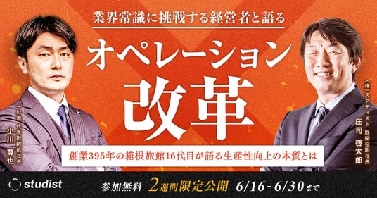 株式会社スタディスト(本社:東京都千代田区、代表取締役CEO:鈴木悟史、以下「スタディスト」)は、2025年6月16日(月)から6月30日(月)まで、セミナー「業界常識に挑戦する経営者と語るオペレーション改革」を無料配信いたします。本セミナーでは、人口減少時代における生産性向上と価値創造の両立を実現した先駆者の知見を学ぶことができます。