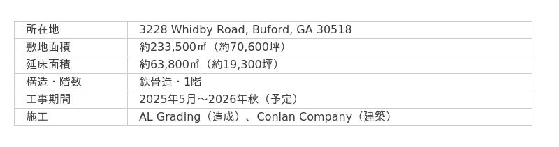 ~米国ジョージア州ビュフォードで大規模物流施設の開発~