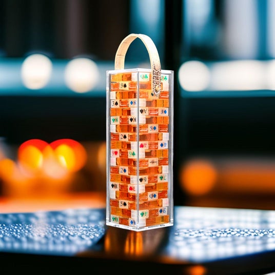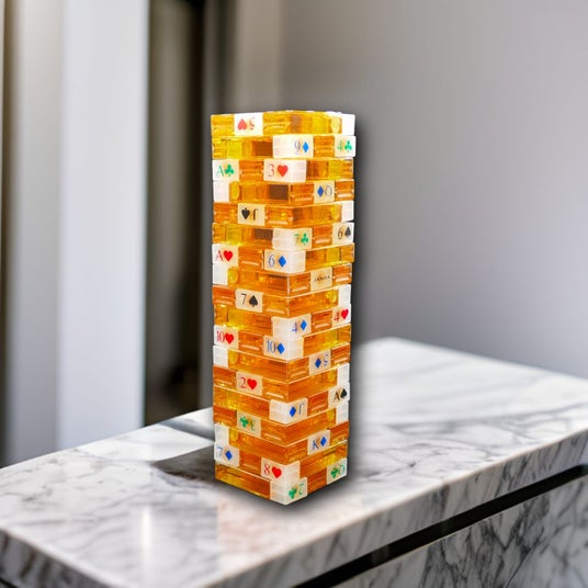 透明なタワーに仕込まれたお酒、崩すたびに盛り上がるスリル、そして大爆笑の乾杯シーン!