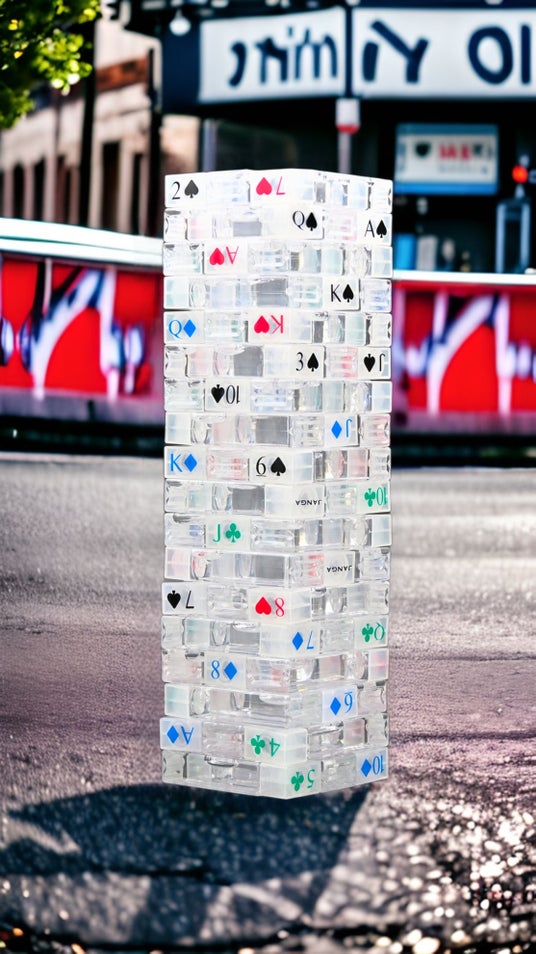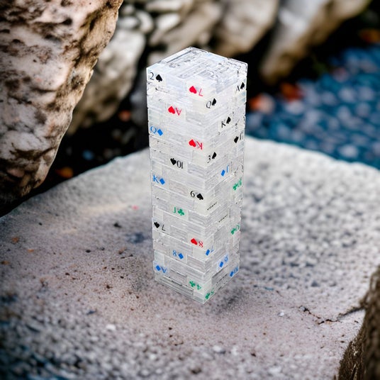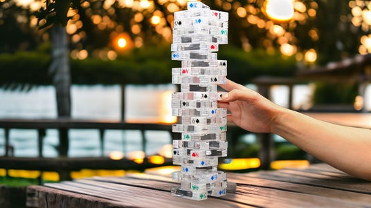 テーブルに佇む、透明なアクリルの塔。張り詰めた空気の中、一手ごとに高まる緊張感。