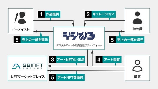 本提携において、九州電力は「デジがろ」内でキュレーションしたデジタルアート作品を、「SBINFT Market」の機能を用いてPolygonチェーン(※3)上のアートNFTとして発行し、本日から一部作品を「デジがろ」内に掲載、2025年6月24日から作品を拡充の上、販売を開始します。九州電力は、当該NFTの売上の一部を、アーティスト及びキュレーターとしてデジタルアート作品を評価する学芸員資格保有者に還元します。