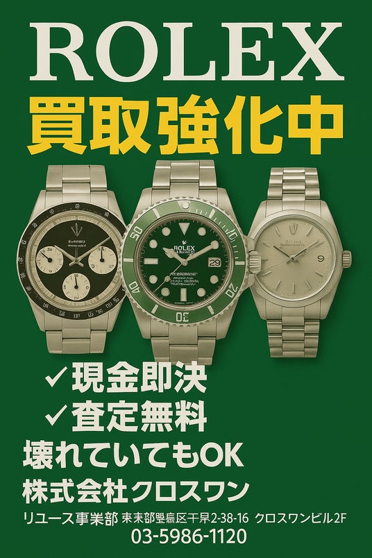 高級時計ROLEXのリユースを推進する株式会社クロスワン・リユース事業部(本社:東京都豊島区千早、代表取締役:品川あきら)は、2025年6月11日(水)より「ROLEX高額買取キャンペーン」を実施いたします。