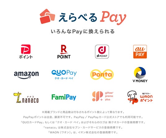 「えらべるPAY」のロゴは登録商標です。PayPayポイントは出金、譲渡不可です。PayPay/PayPayカード公式ストアでも利用可能です。