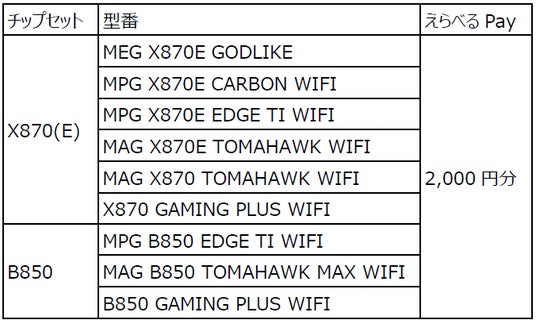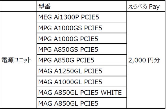 MSI、対象のチップセット搭載マザーボードや一部のMSI 簡易水冷クーラー・電源を購入後、指定サイトにレビューを投稿した全員様に2,000円分のえらべるPayが必ずもらえる!