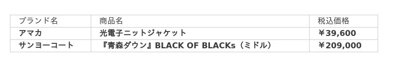 - 光電子、BLACK OF BLACKs(ブラック オブ ブラック)、高品質なダウン等、機能面或いは仕様面で、一般商品との明確な差別化要素があり、これまで世の中に存在しなかった新たな付加価値を備えていること